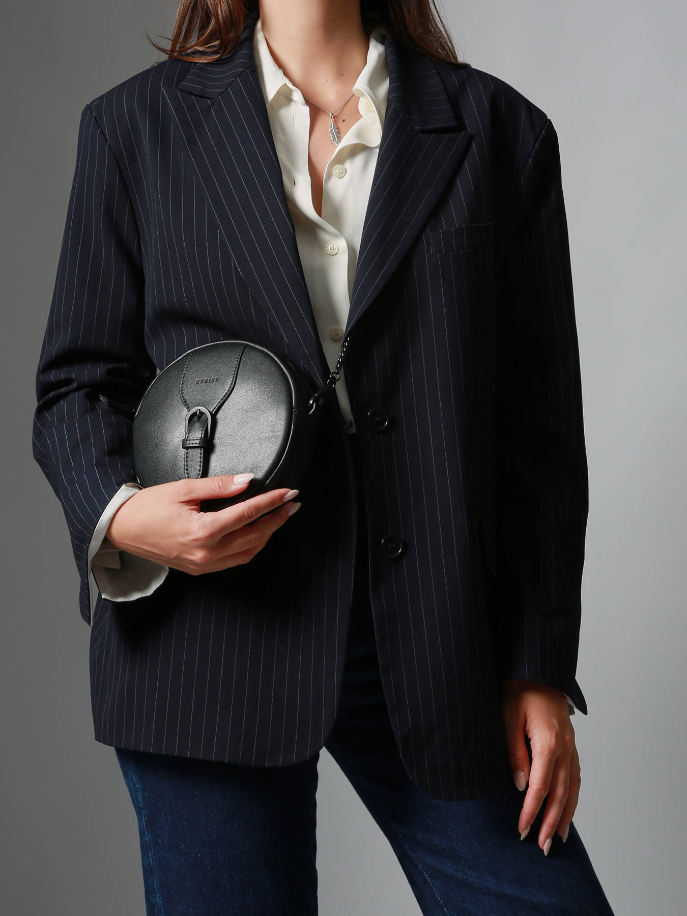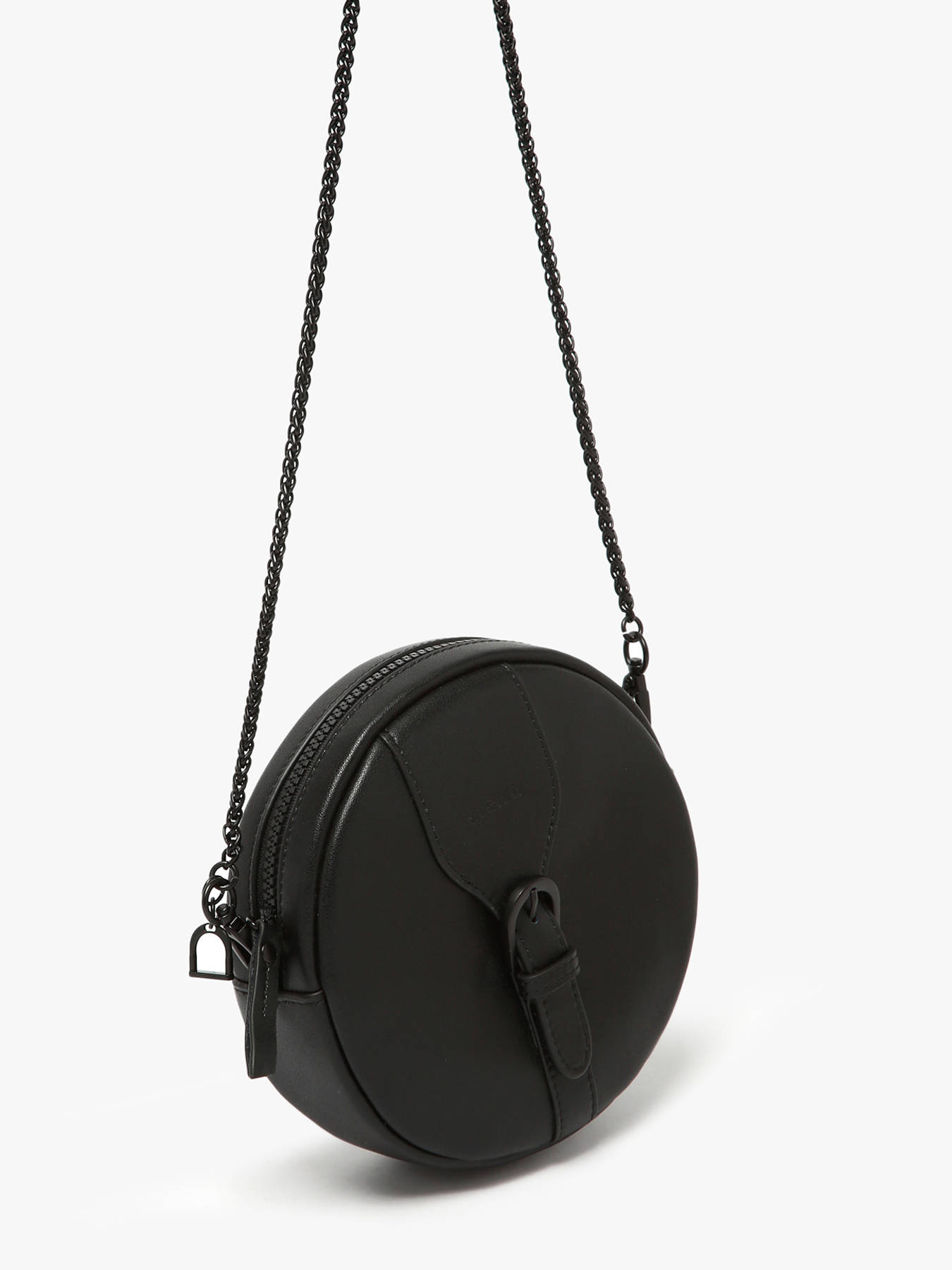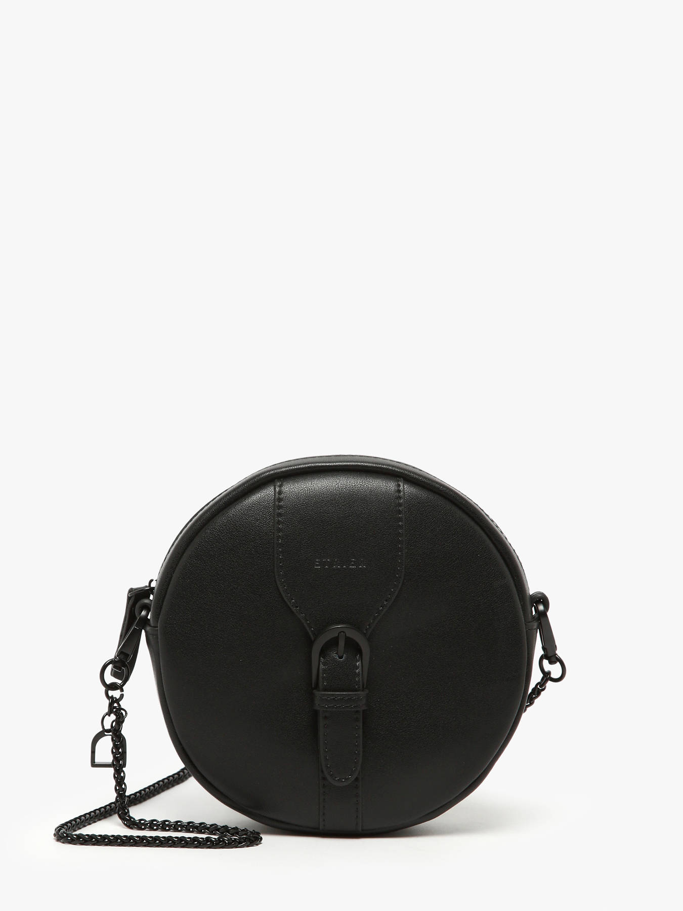 The ETRIER crossbody bag from the OXER line captivates with its round shape and elegant chain strap. Made of leather, it closes with a secure zipper and features a distinctive buckle on the front. Its practical interior includes a zippered pocket. Bold and modern, the Oxer collection stands out with a sleek design enhanced by tone-on-tone metal accessories, adding subtle sophistication true to the ""Highlander Cowboy"" spirit.